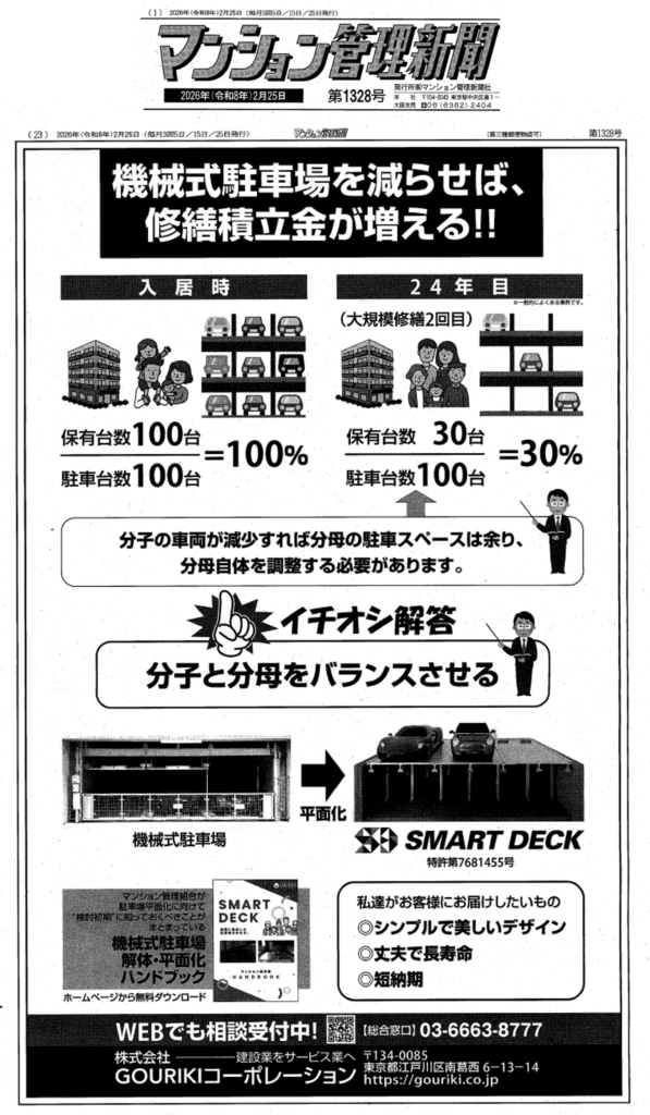 2月25日発行のマンション管理新聞に社会問題である機械式駐車場問題を解決に導く